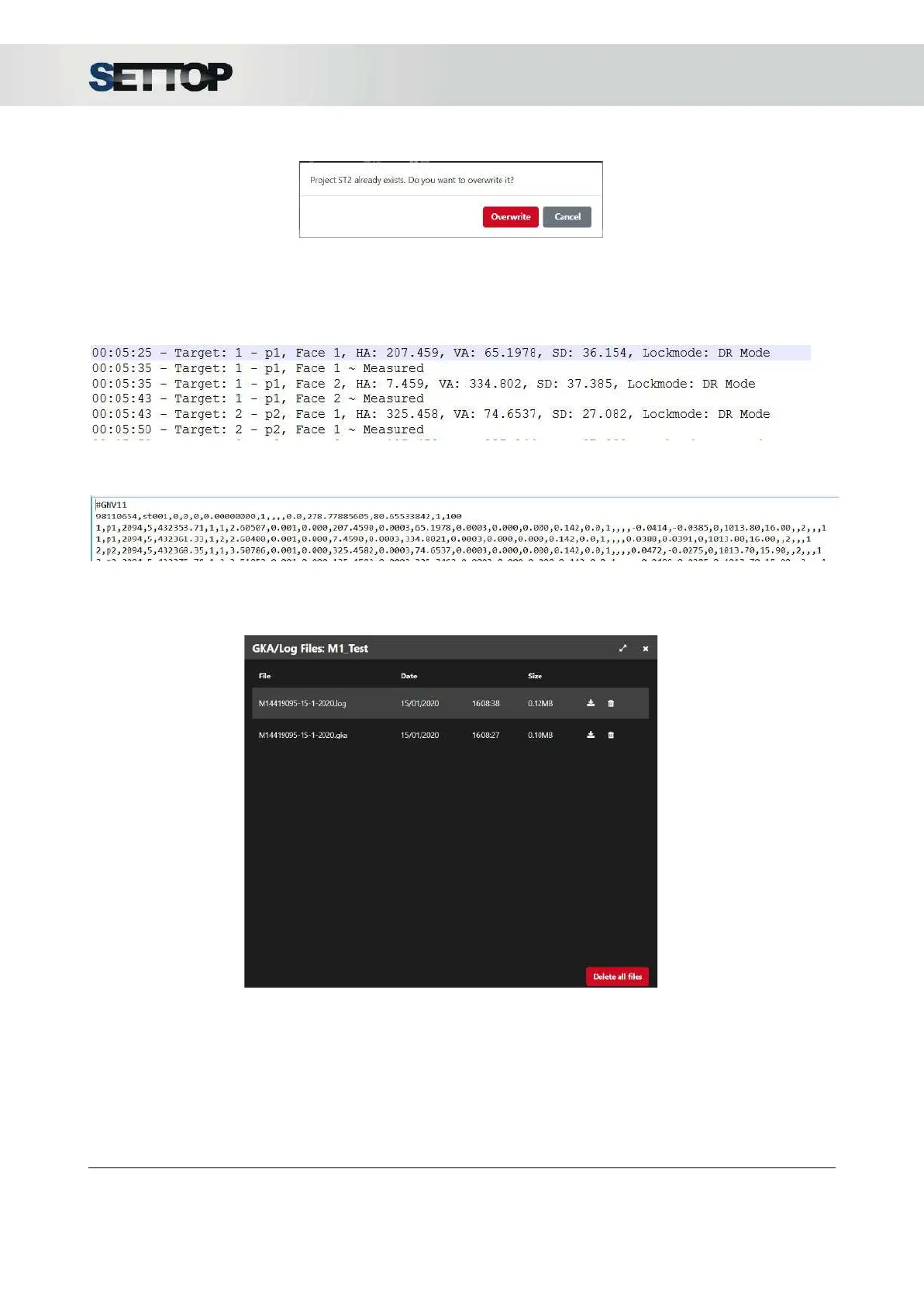 By pressing Log files, a list of all the measurement files corresponding to the current project is opened. 2
