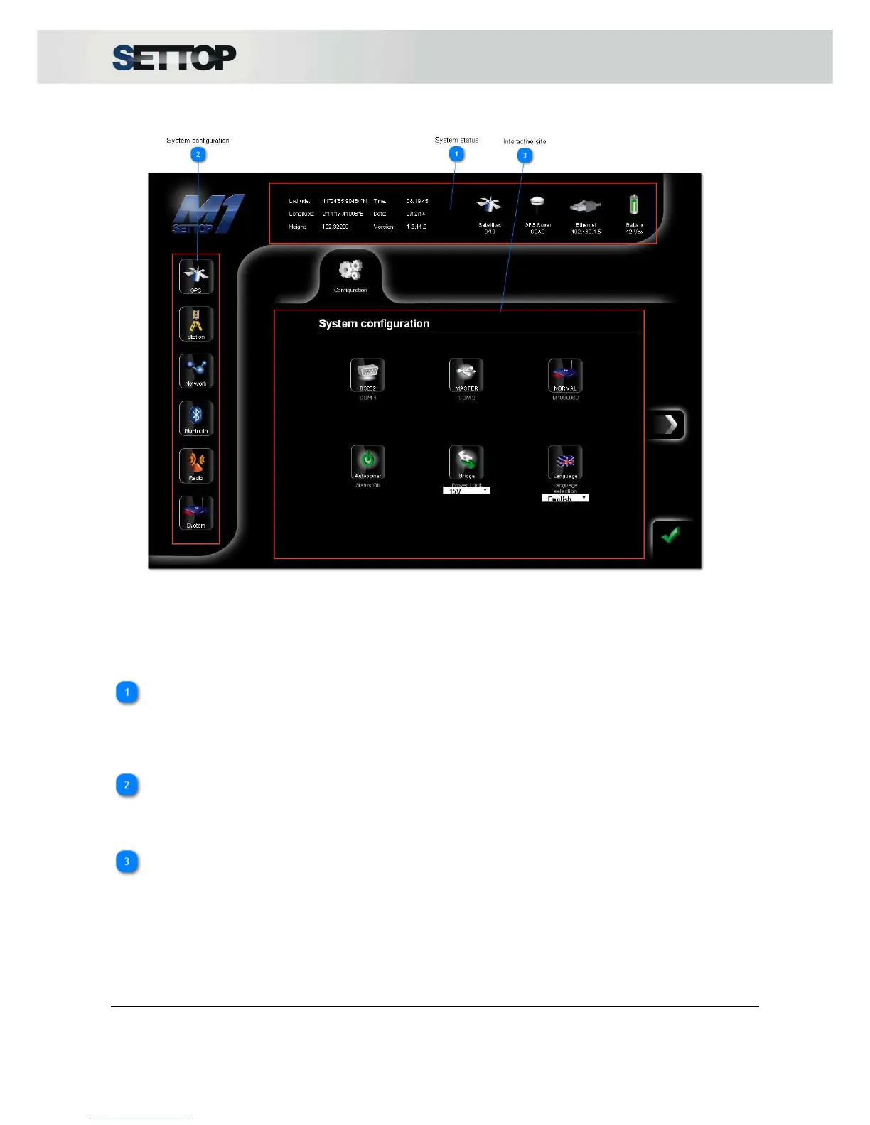 In the upper part, we can control the state of the configuration of our Base/Mobile GPS as well as its