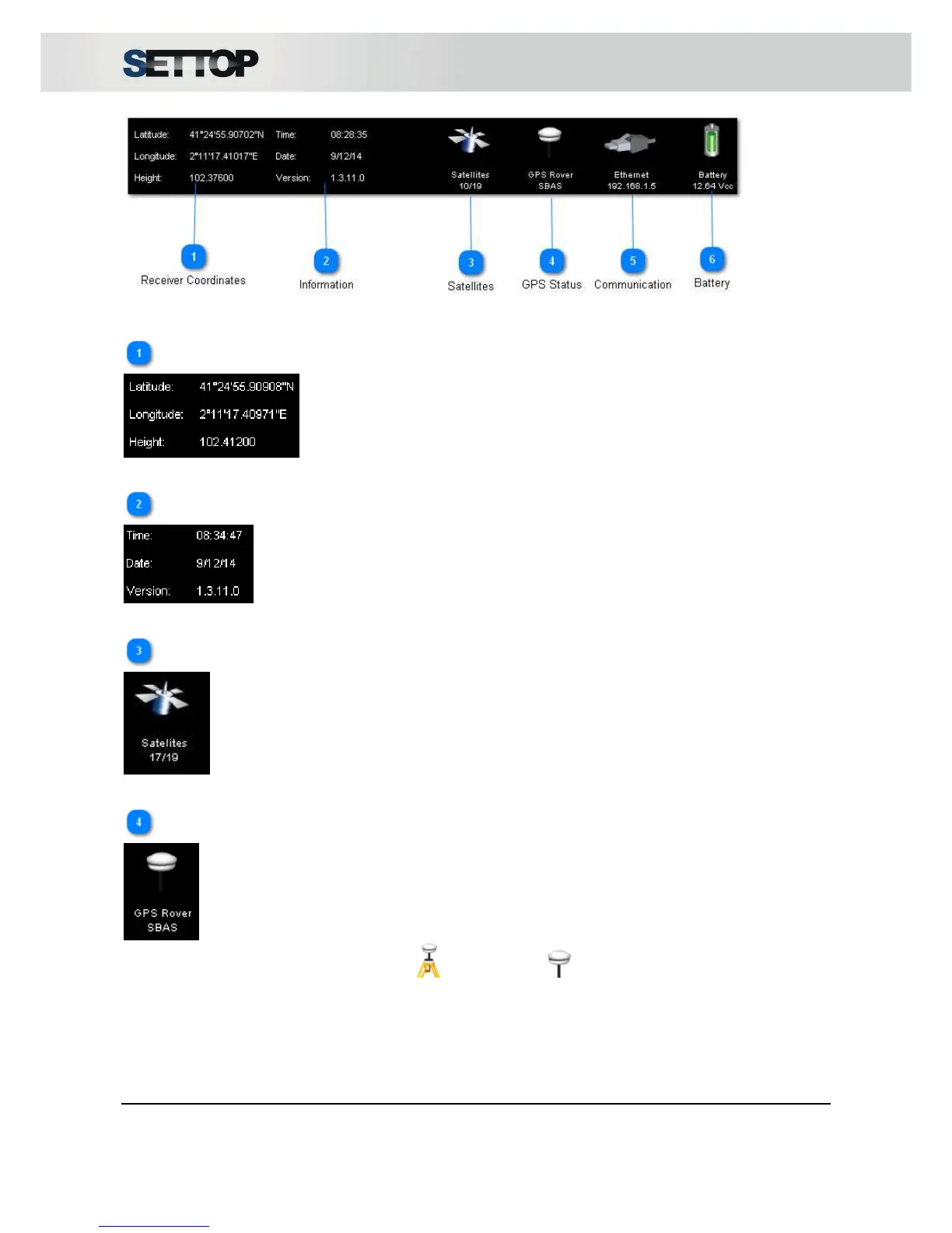 Status level: Autonomous, SBAS, RTK Floating or RTK Fixed