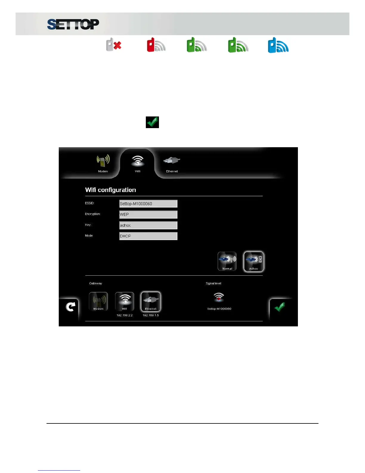 To configure the wireless network of Settop M1 you have to choose from the available options. The first
