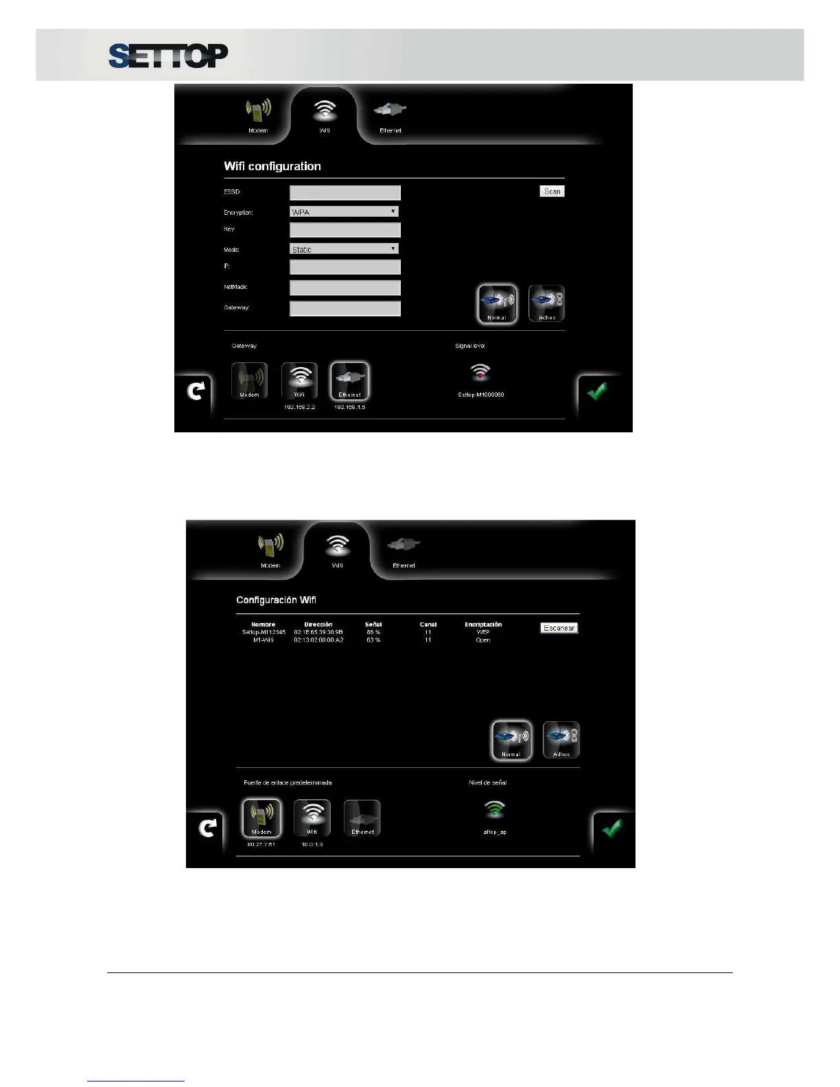 The Scan button tracks all available activated networks within reach of the Settop M1. All of these networks