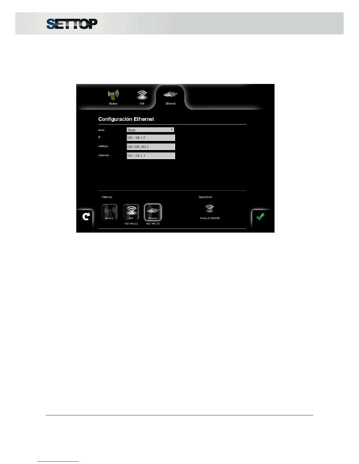 You can select the mode within Static or DHCP. If the selection is Static, you must configure the IP, Net