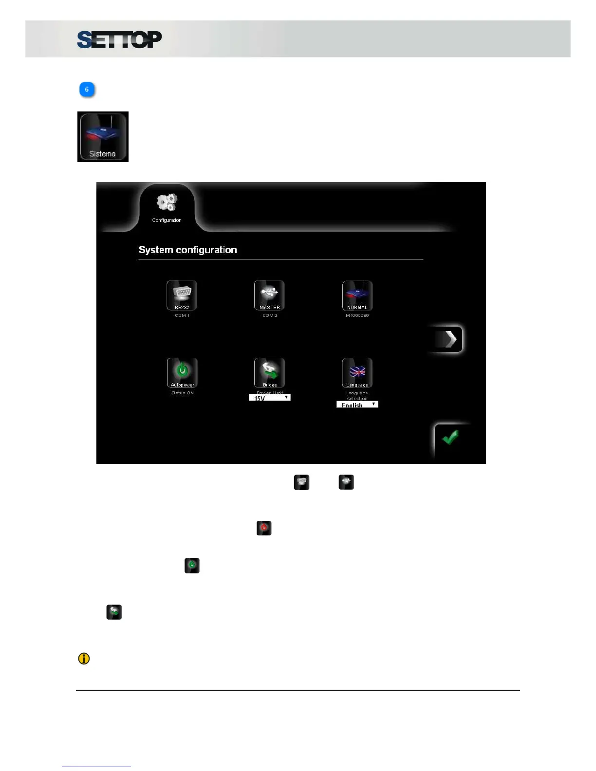 In the System section there are two subsections that show the Settop M1 configuration.