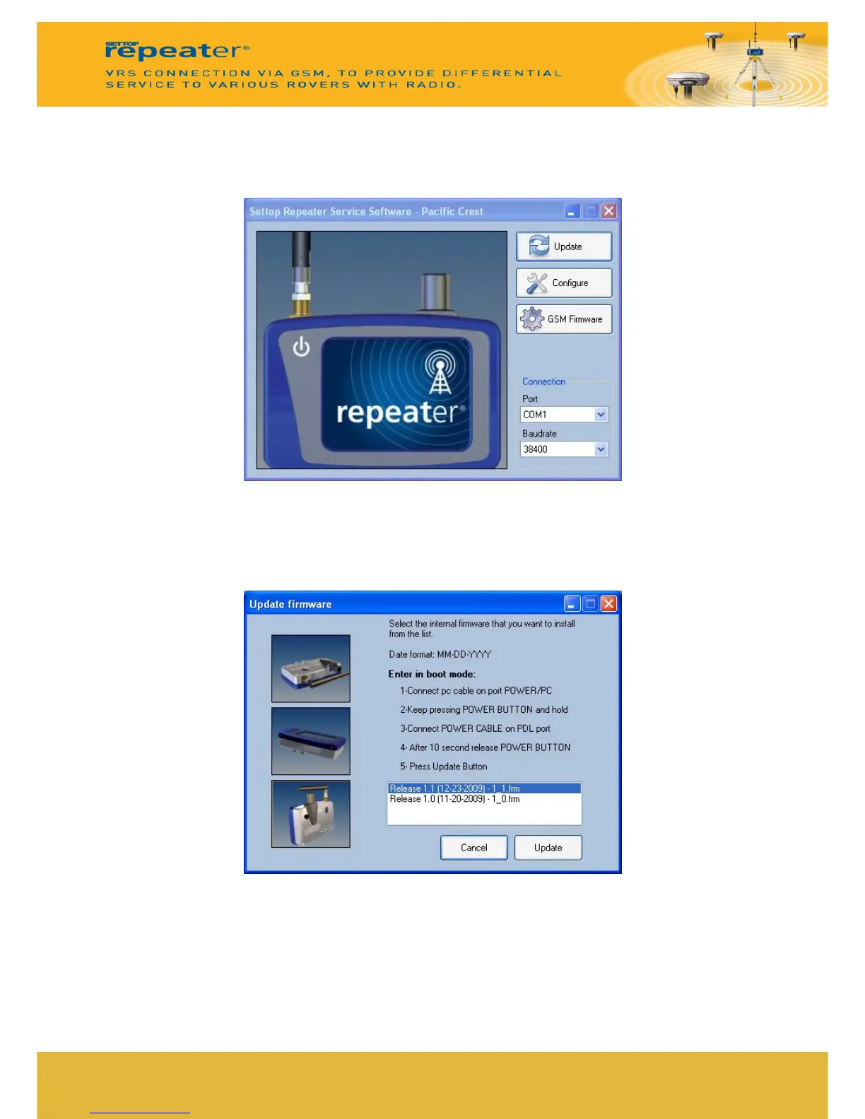 For firmware updates is necessary to connect the SETTOP Repeater to the PC and run the