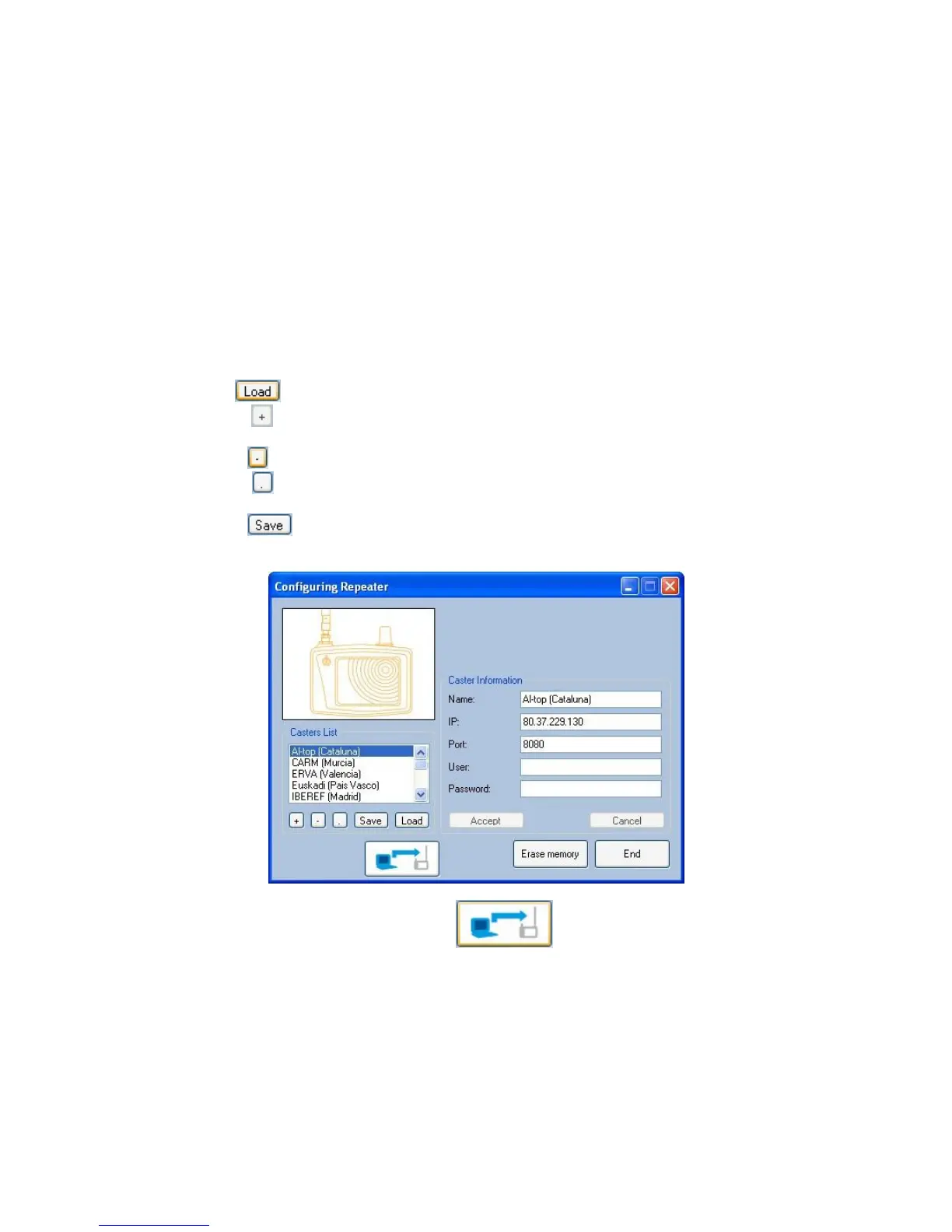 The Configure option allows the user to create a list of castres in the PC and send it to the