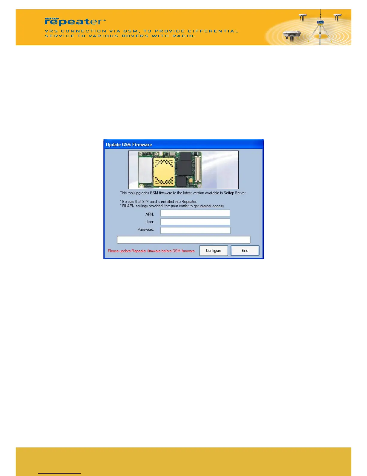 The GSM Firmware option updates the internal GSM module. The update process is