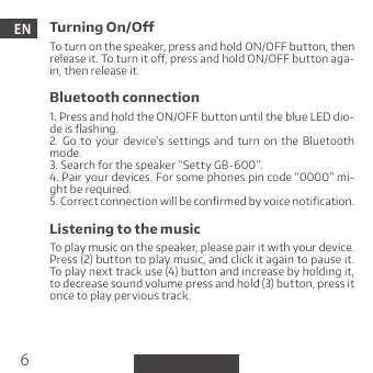1. Press and hold the ON/OFF button until the blue LED dio-