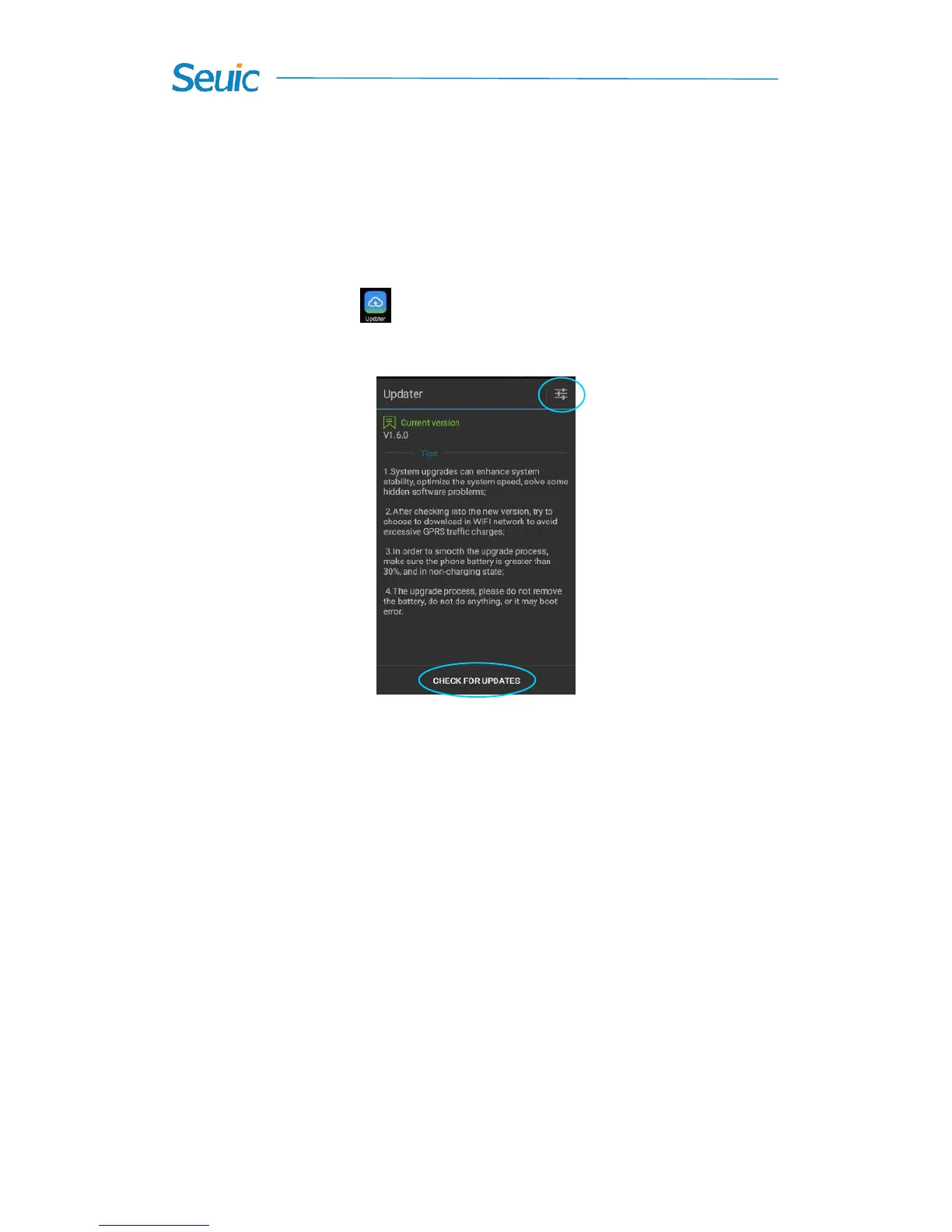 1. Find this icon , and enter Updater (or go to Settings-> About