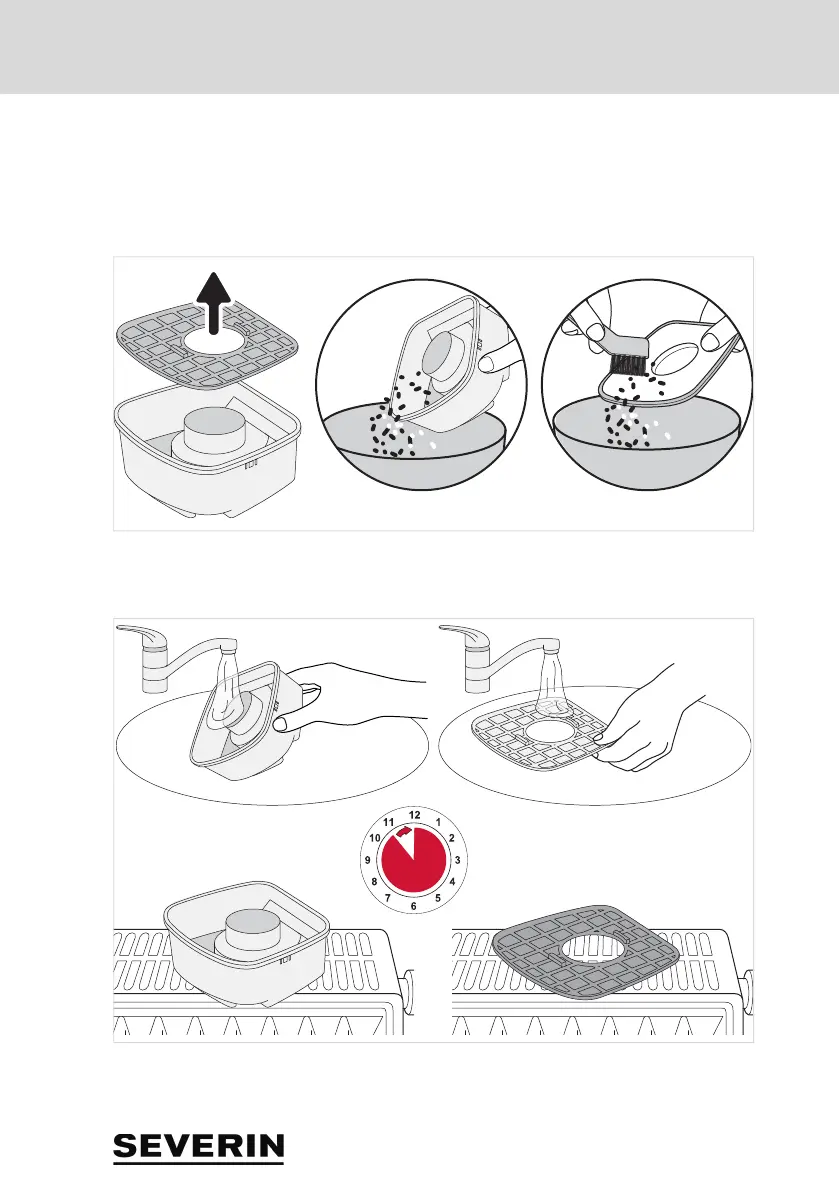 W razie potrzeby wyczyścić zbiornik kurzu i filtr na mokro:
