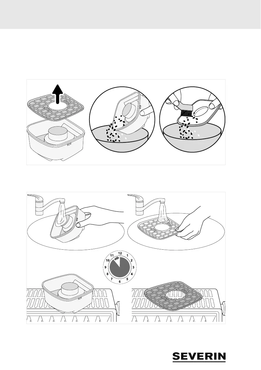 Rengör dammbehållaren och filtret vått vid behov: