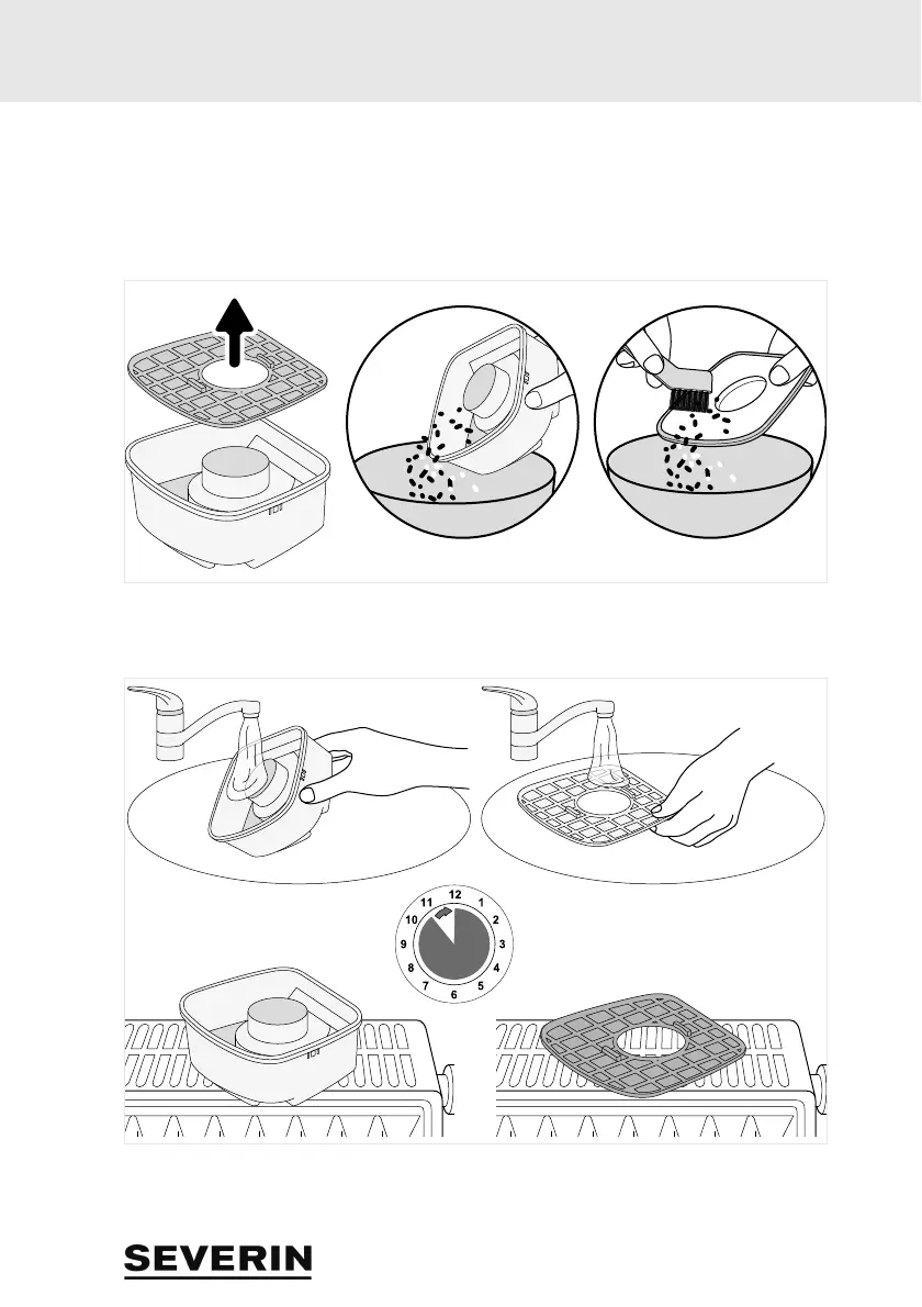 W razie potrzeby wyczyścić zbiornik kurzu i filtr na mokro: