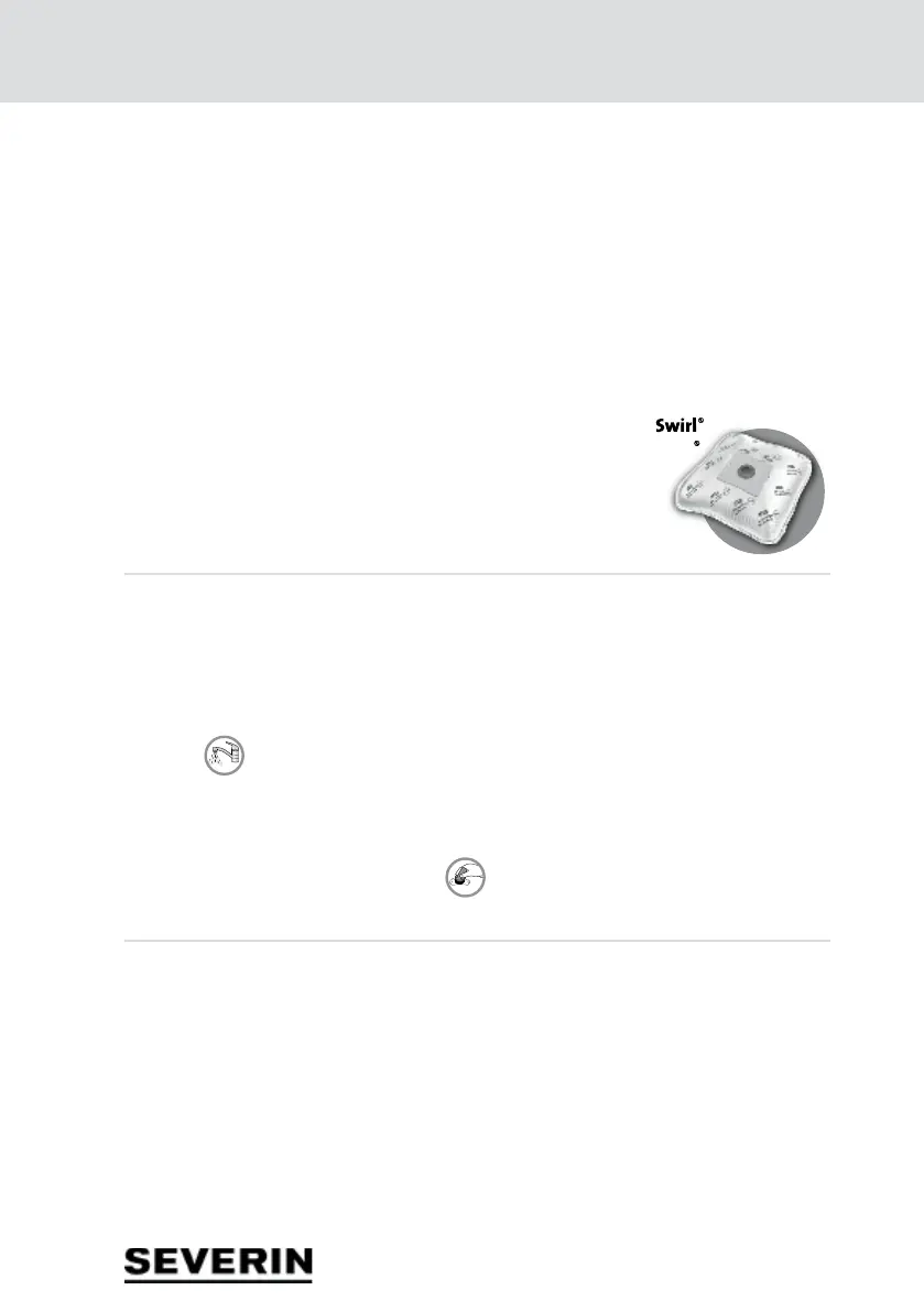 – Vor dem Staubbeutelwechsel Gerät ausschalten und Stecker aus der Steckdose ziehen.