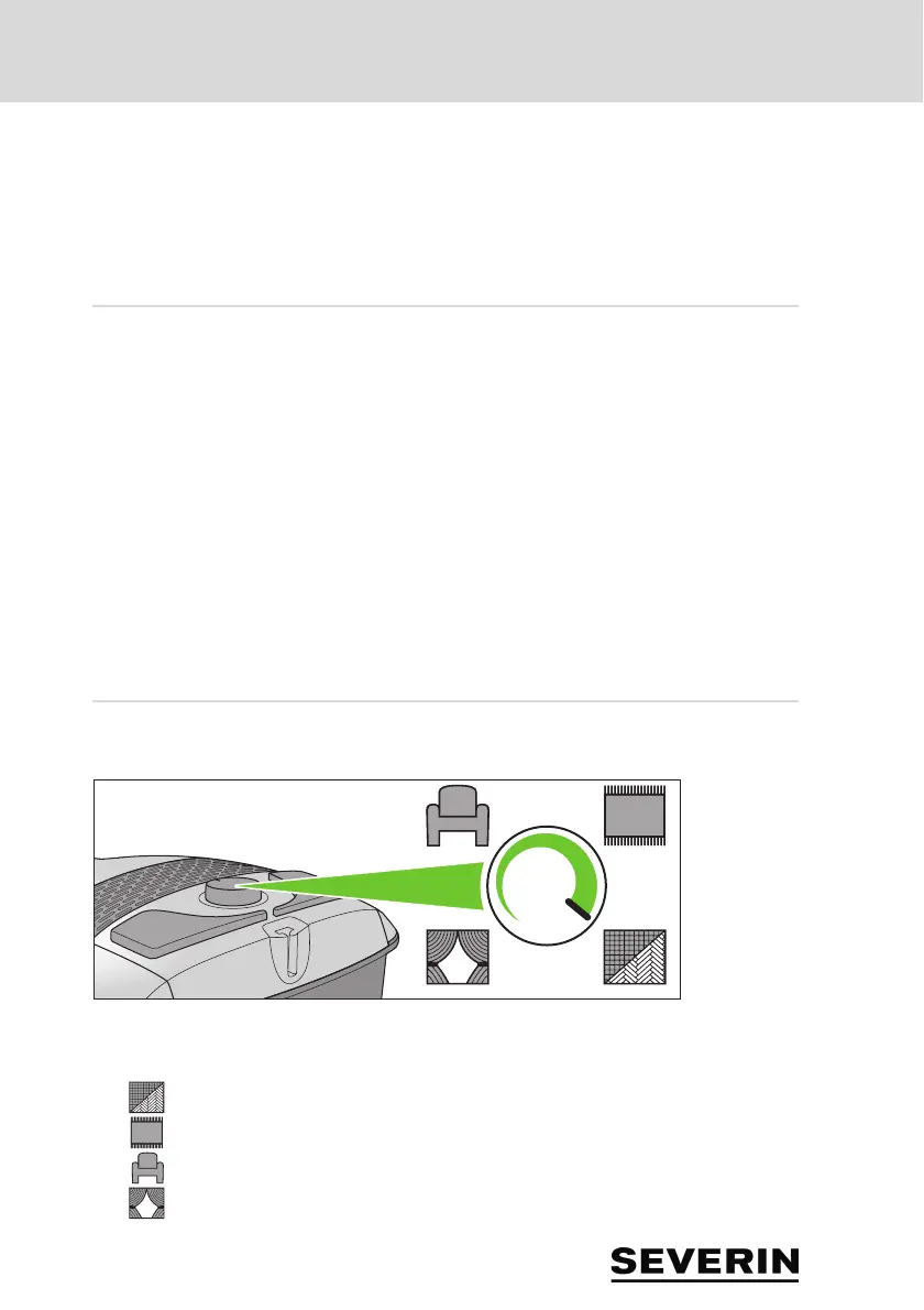 De vermogensregelaar is traploos verstelbaar. Afhankelijk van de te zuigen ondergrond moet de