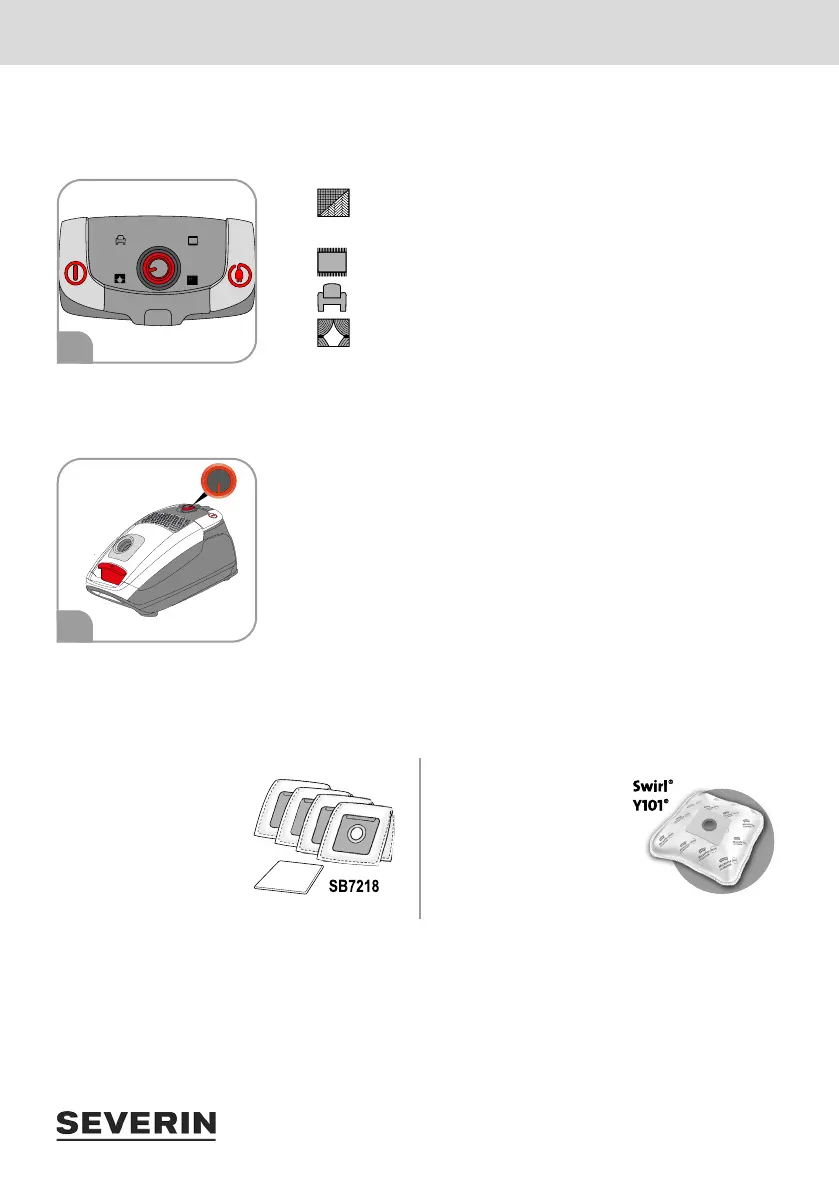 Regulator mocy ustawiany jest płynnie. Położenie regulatora mocy należy ustawić odpowiednio do odkurzane-