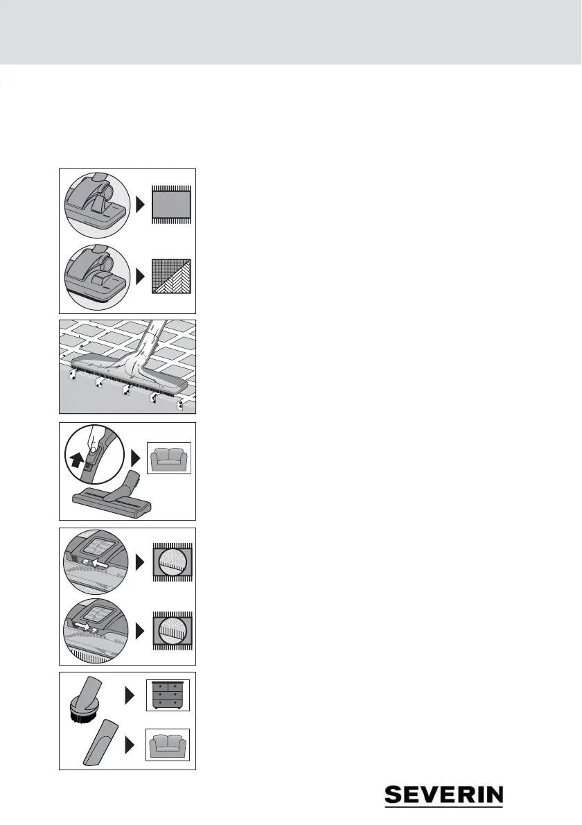 – Välj munstycke utifrån det underlag som ska dammsugas: