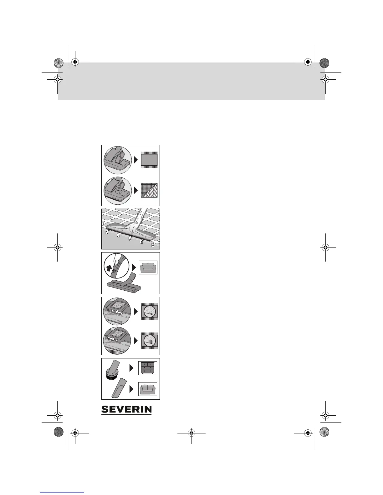Przełączalna dysza podłogowa ma 2 możliwości ustawienia: