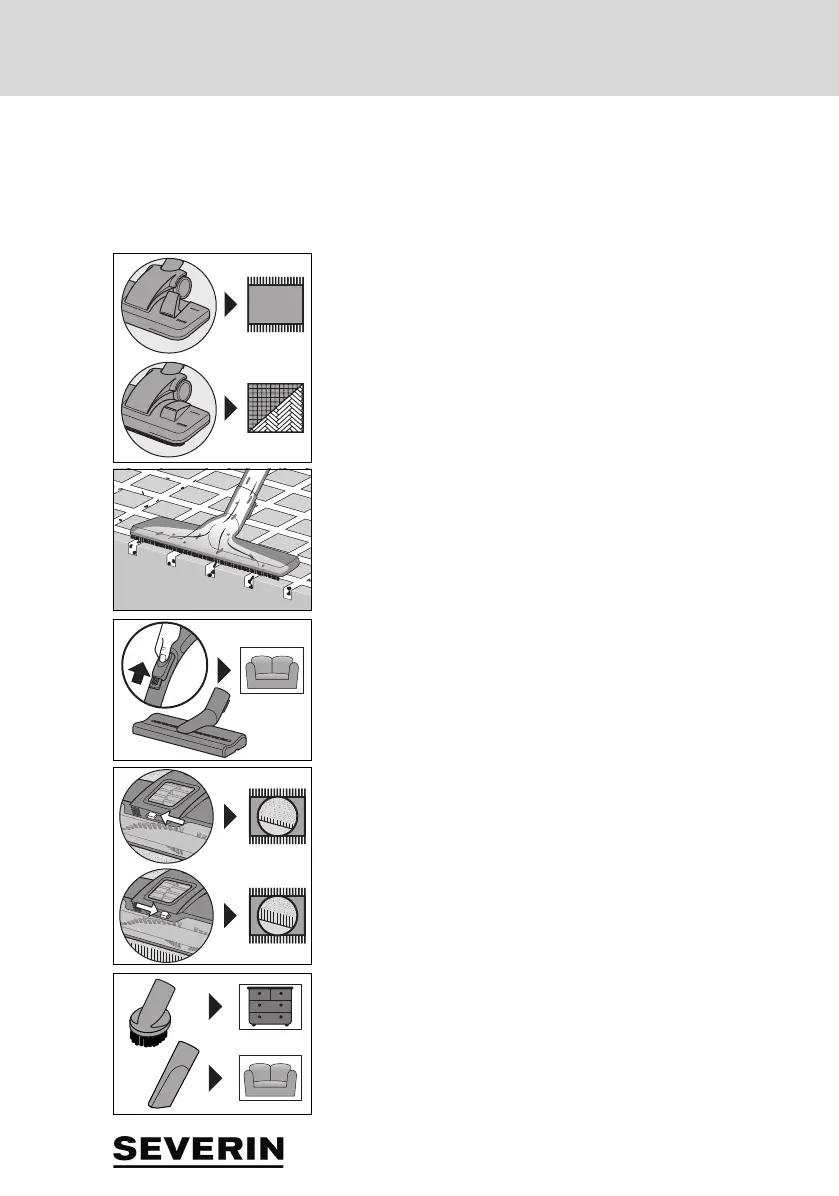 – Select the appropriate nozzle for the surface being vacuum-cleaned: