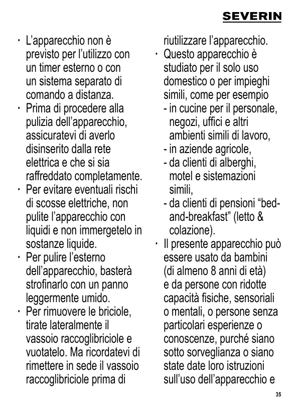 ∙ Per rimuovere le briciole,