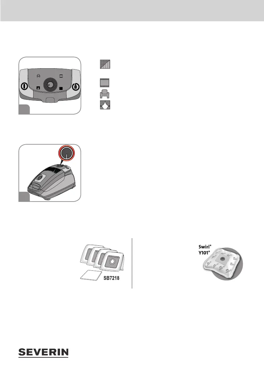 Regulator mocy ustawiany jest płynnie. Położenie regulatora mocy należy ustawić odpowiednio do odkurzane-