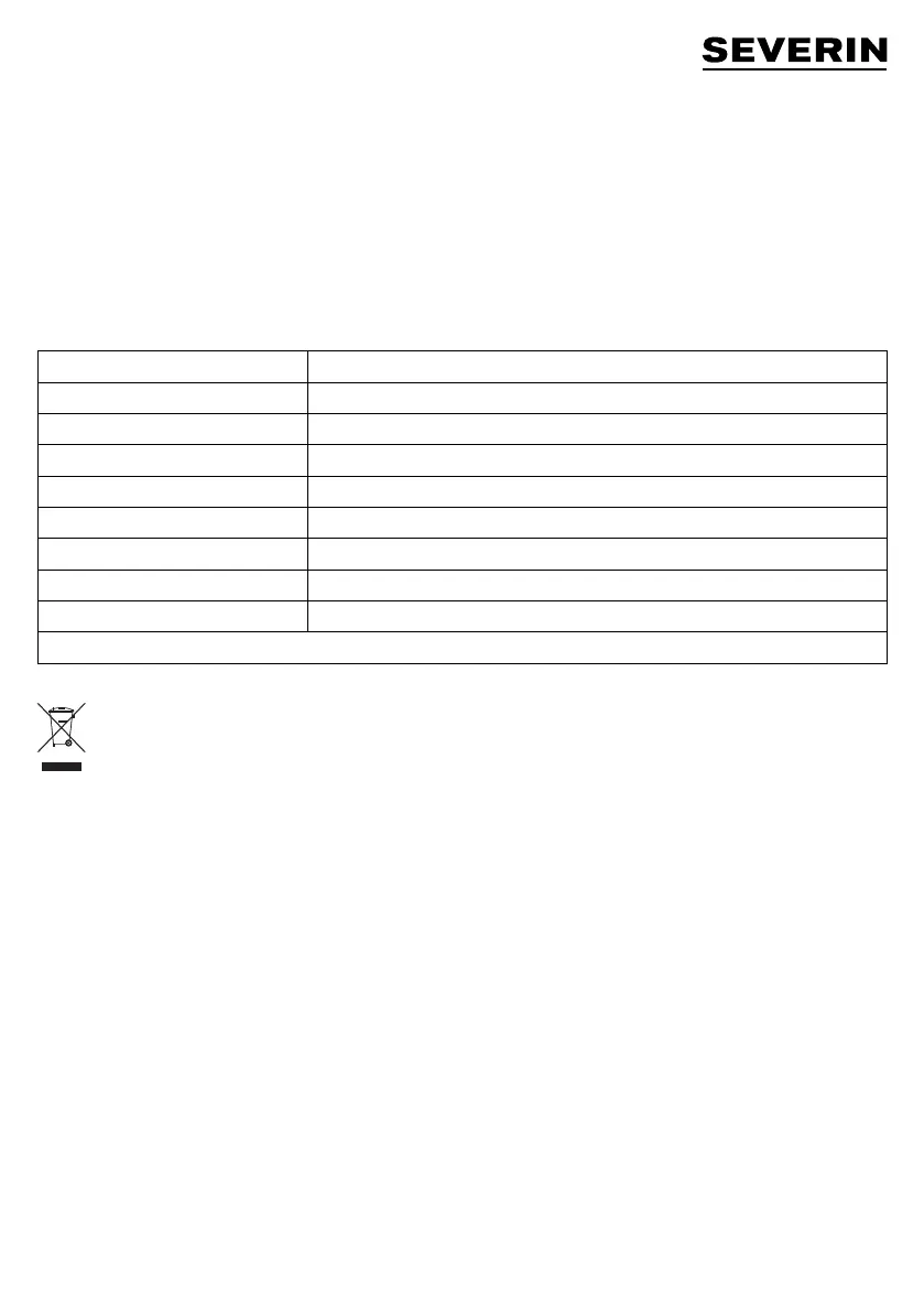 Valmistuttaja: Severin Elektrogeräte GmbH, Saksa