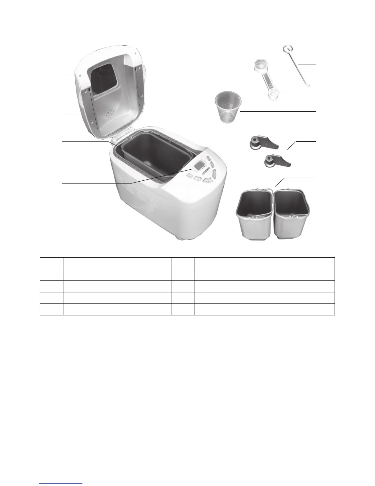 4. Panel sterujący z wyświetlaczem 9. 2 małe formy do pieczenia chleba