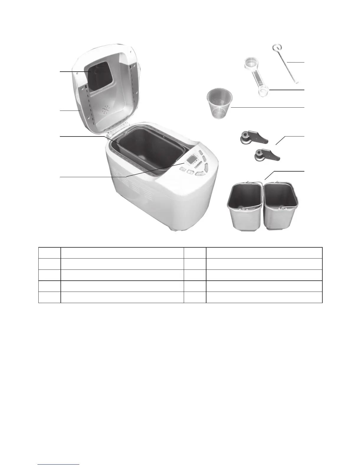 4. Панель управления с дисплеем 9. 2 малых формы для выпечки хлеба