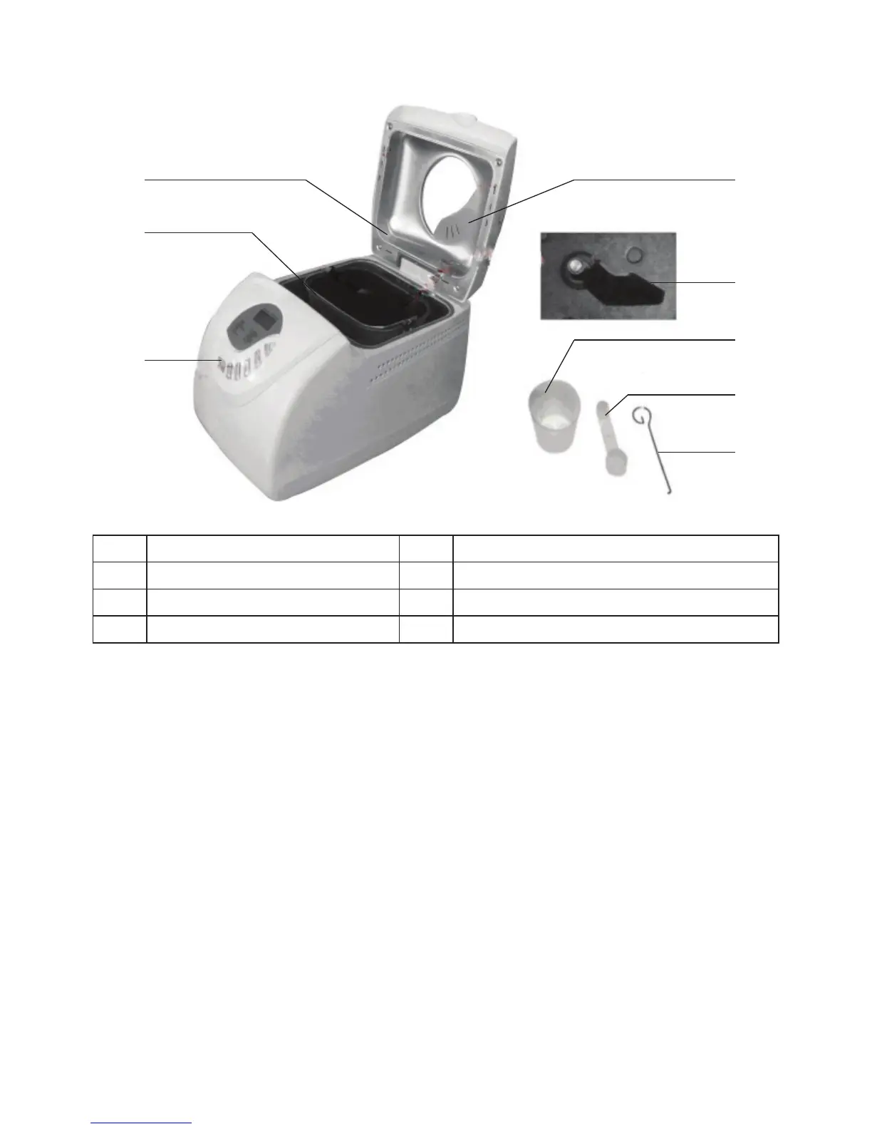 1. Hublot dobservation 5. Outil destiné au retrait du crochet pétrisseur