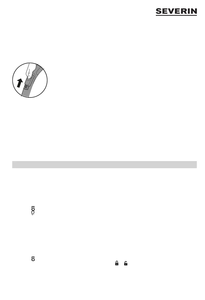 ∙ Die Taste zum Einziehen des Stromkabels drücken und das Stromkabel einziehen. Dabei den Stecker in der Hand halten