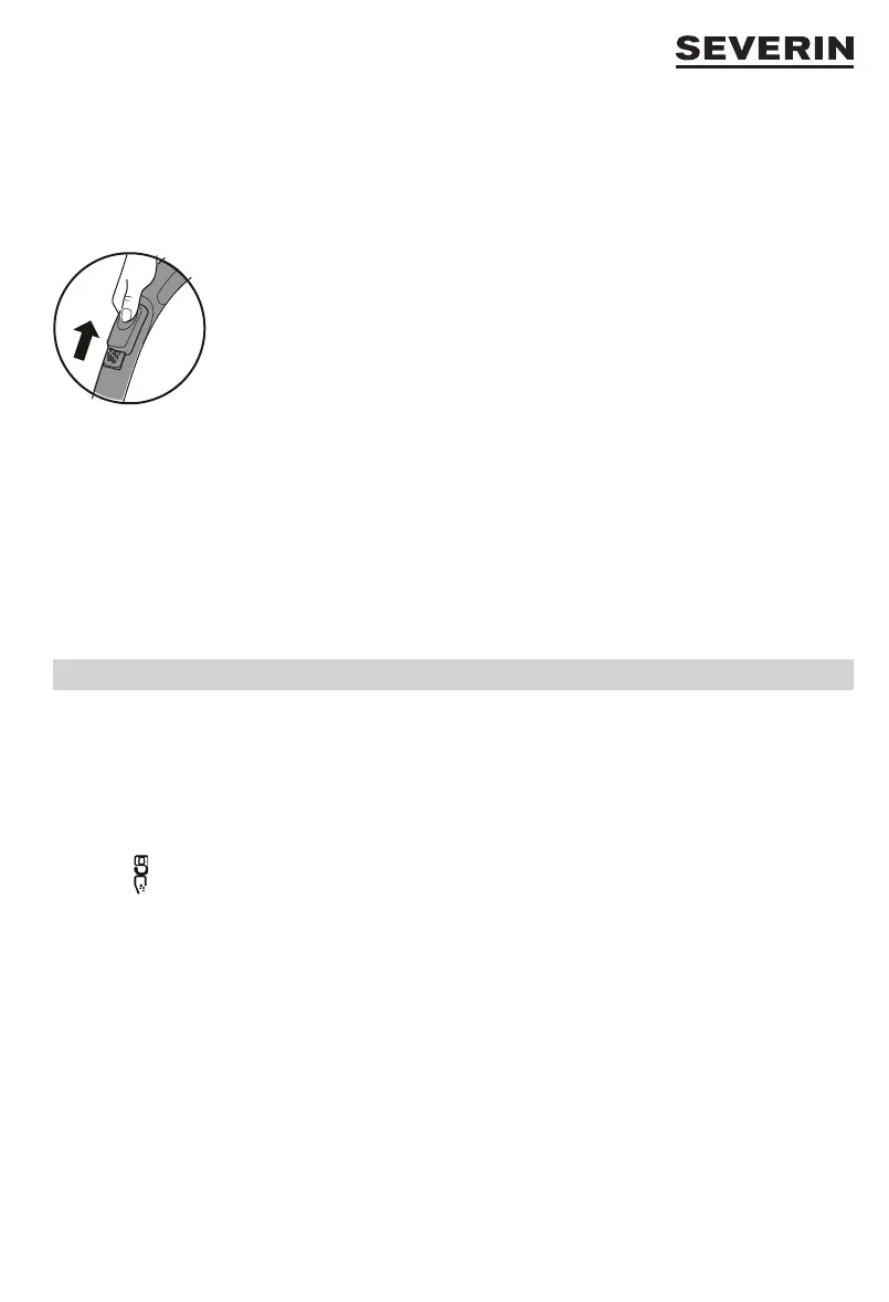 ∙ Knappen för att dra in strömkabeln trycks ner så sladden dras in. Håll då i sladden och följ med i samma riktning som