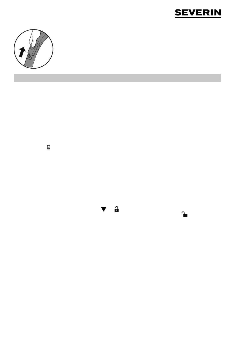 ∙ Turn the dust container lid by its handle (14) until and are aligned. Take off the lid.