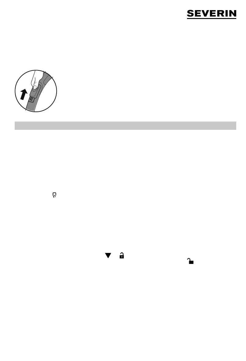 ∙ Dra dammbehållarens lock i handtaget (14) tills och står mittemot varandra. Lossa locket.