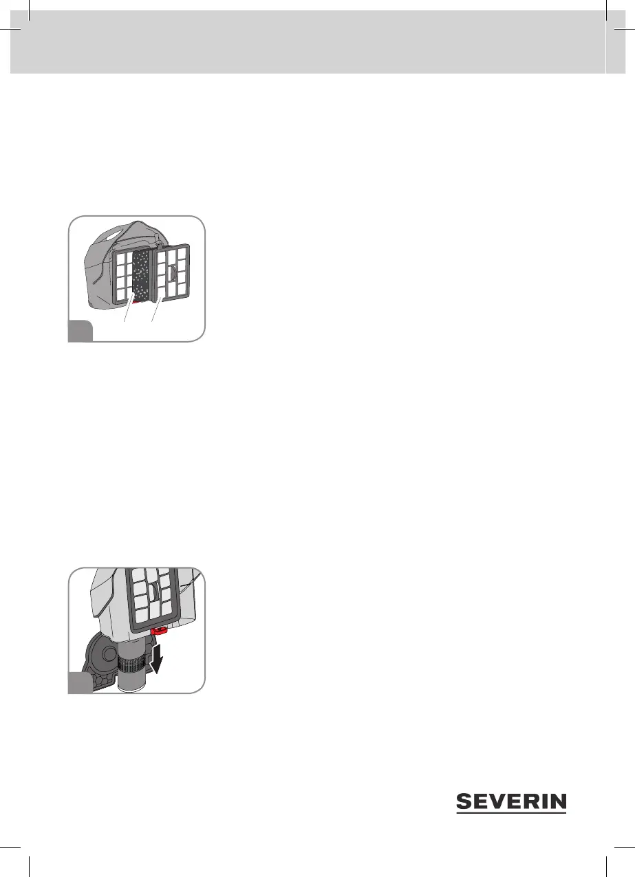 1. Ta bort och töm dammbehållaren (”Tömning av dammbehållaren” på