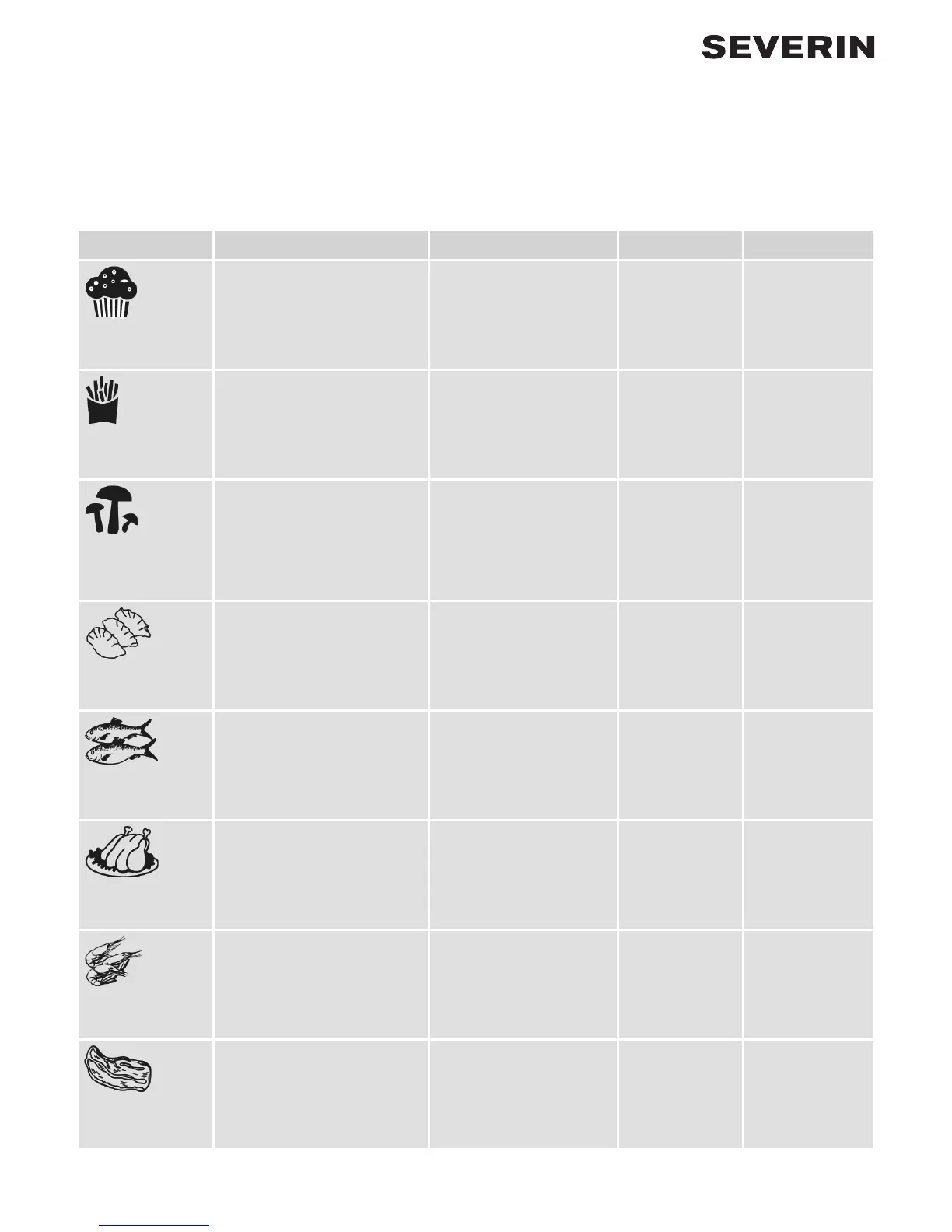 Symbol Food Programme selection Temperature Time