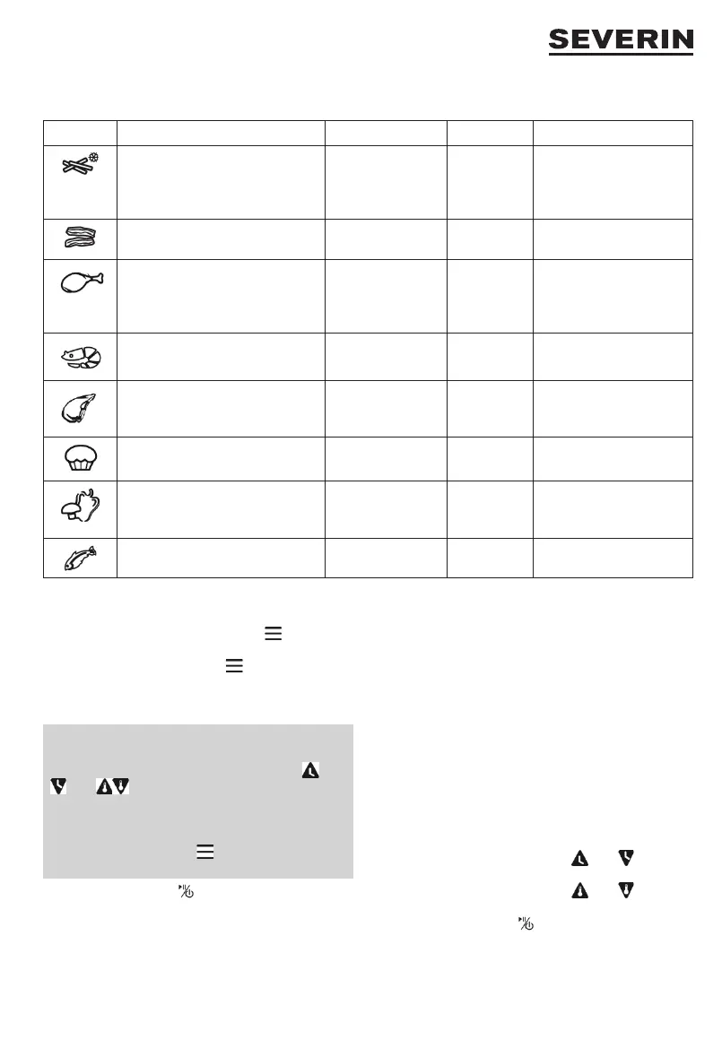 Ü Das Gargut wird frittiert. Im Display leuchten