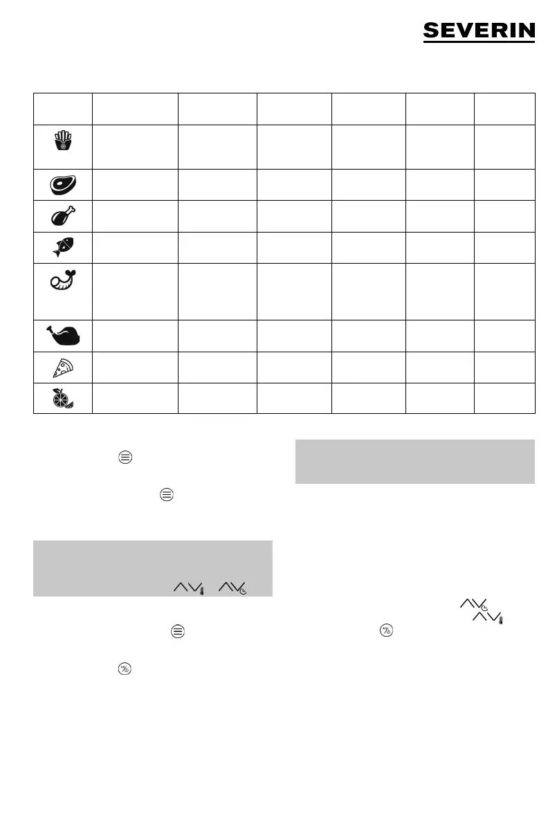 Cesto de fritura 1 x volta 400 – 800 g 180 °C 30-35 min