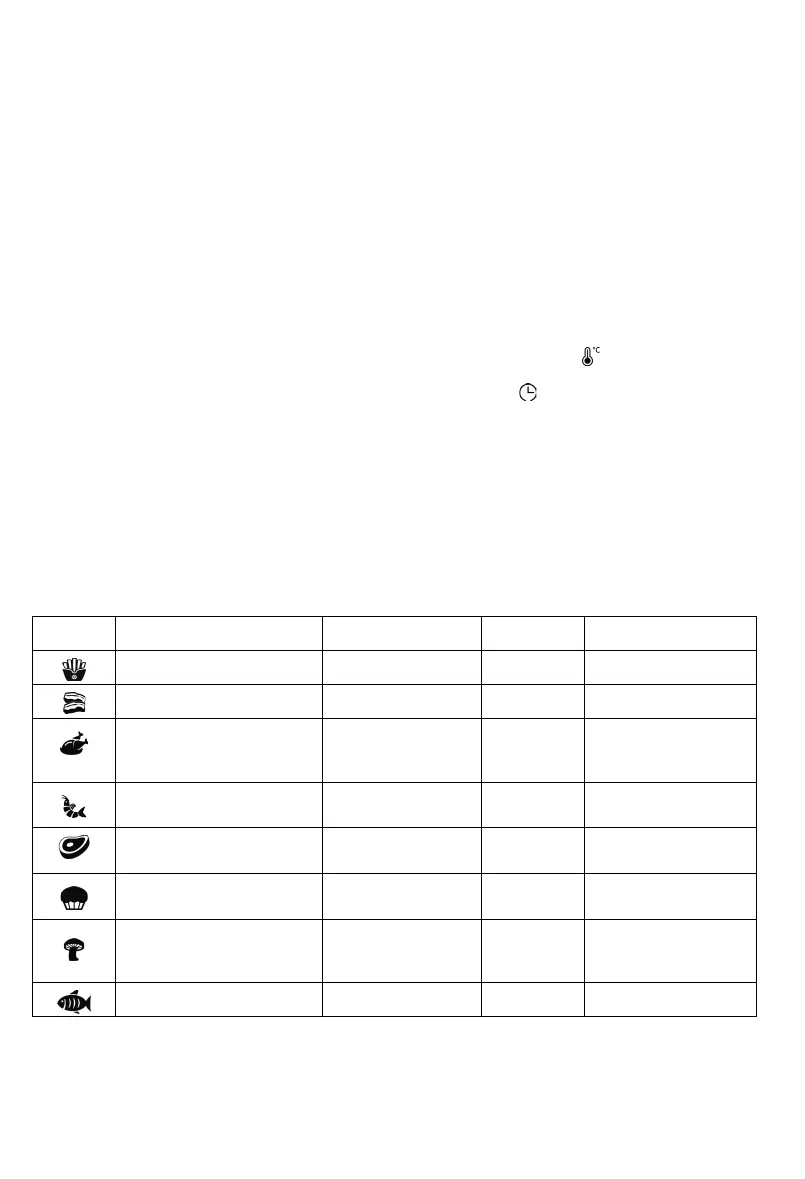 Símbolos Alimentos a cozinhar Sugestões Temperatura Tempo