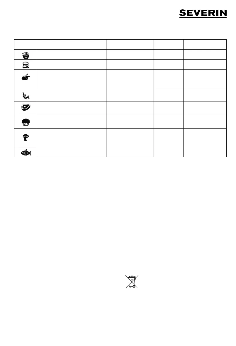 Τηγανητές πατάτες (κατεψυγμένες) Γυρίζετε ανά 5 λεπτά 200 °C 18 – 25 λεπτά