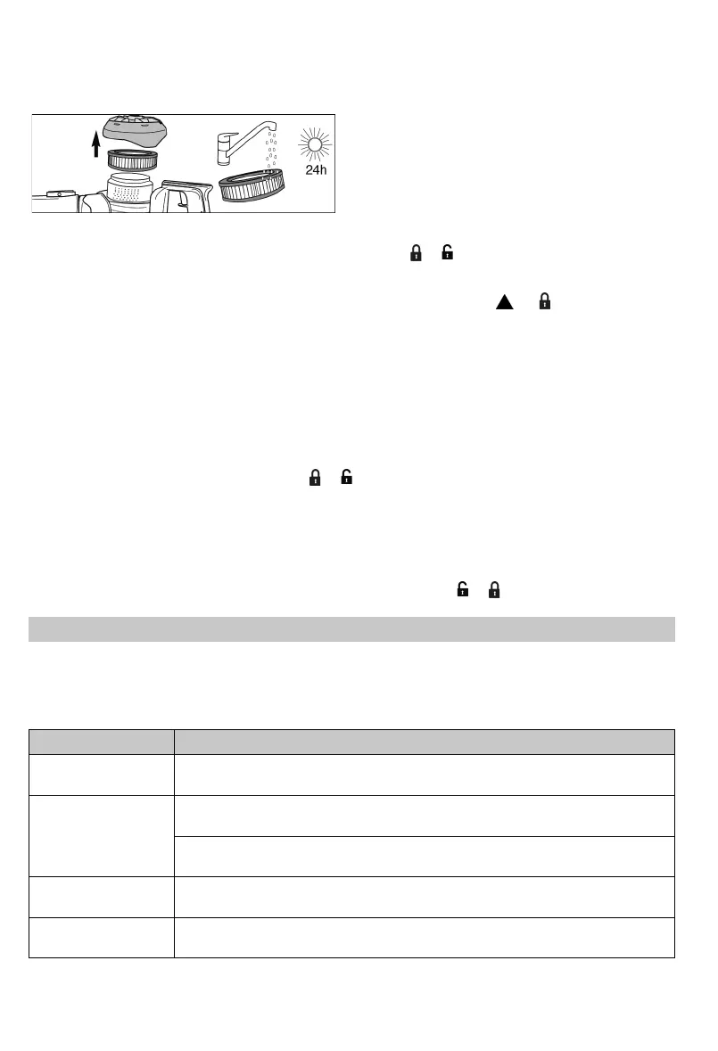 3. Ausblas-Filter abnehmen und unter ießendem Wasser reinigen. 24 h Stunden lang trocknen lassen.