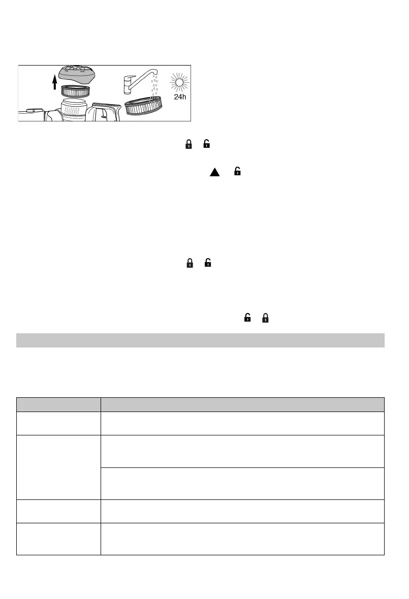 5. Put on the cover of the outlet lter and lock it by turning until and are facing each other