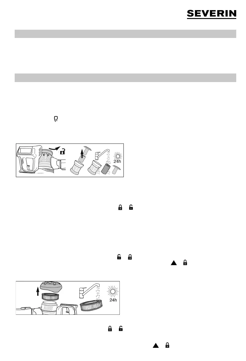 12. Sæt støvbeholderinsatsen i, og lås den ved at dreje ( → ).
