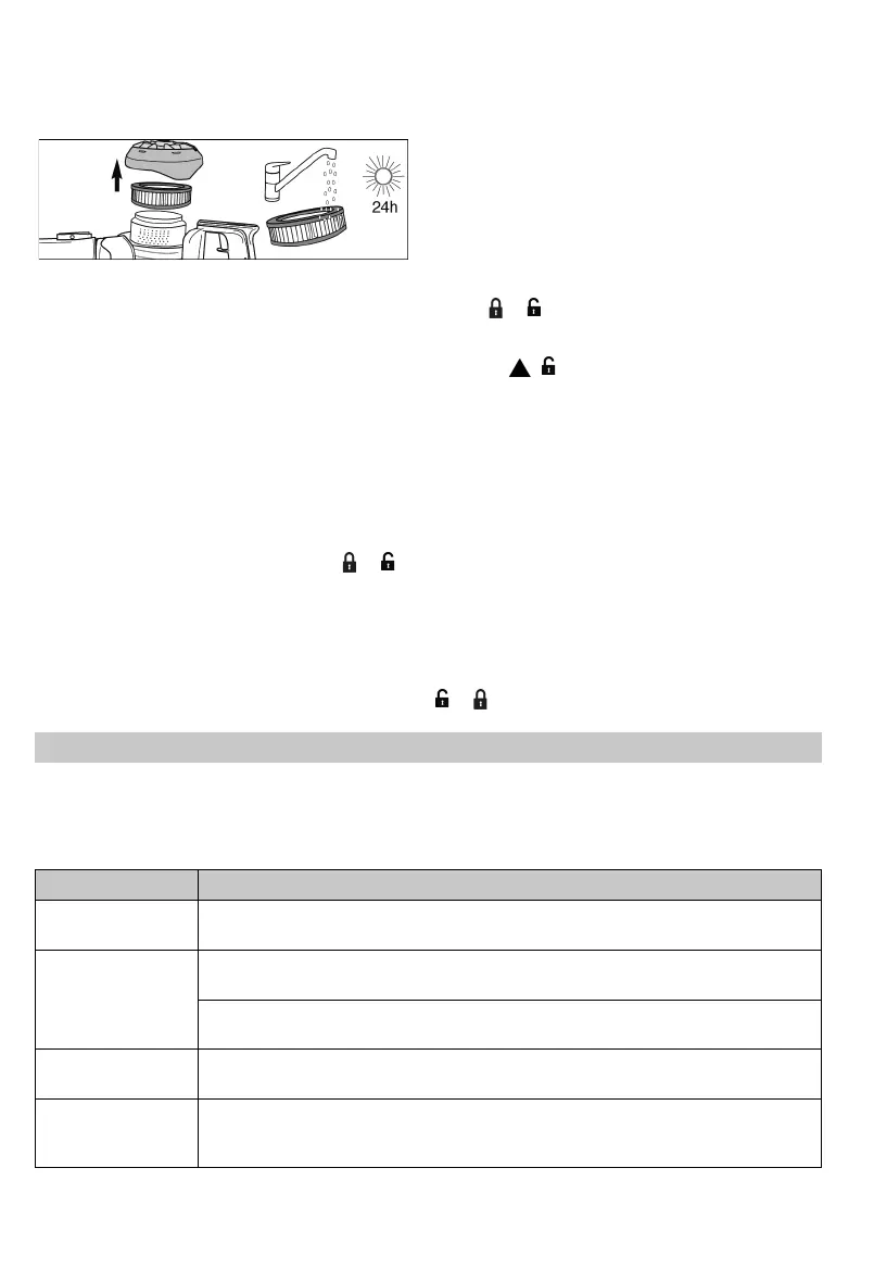 2. Odblokować pokrywę ltra wylotowego, obracając w prawą stronę ( → ), i zdjąć ją.