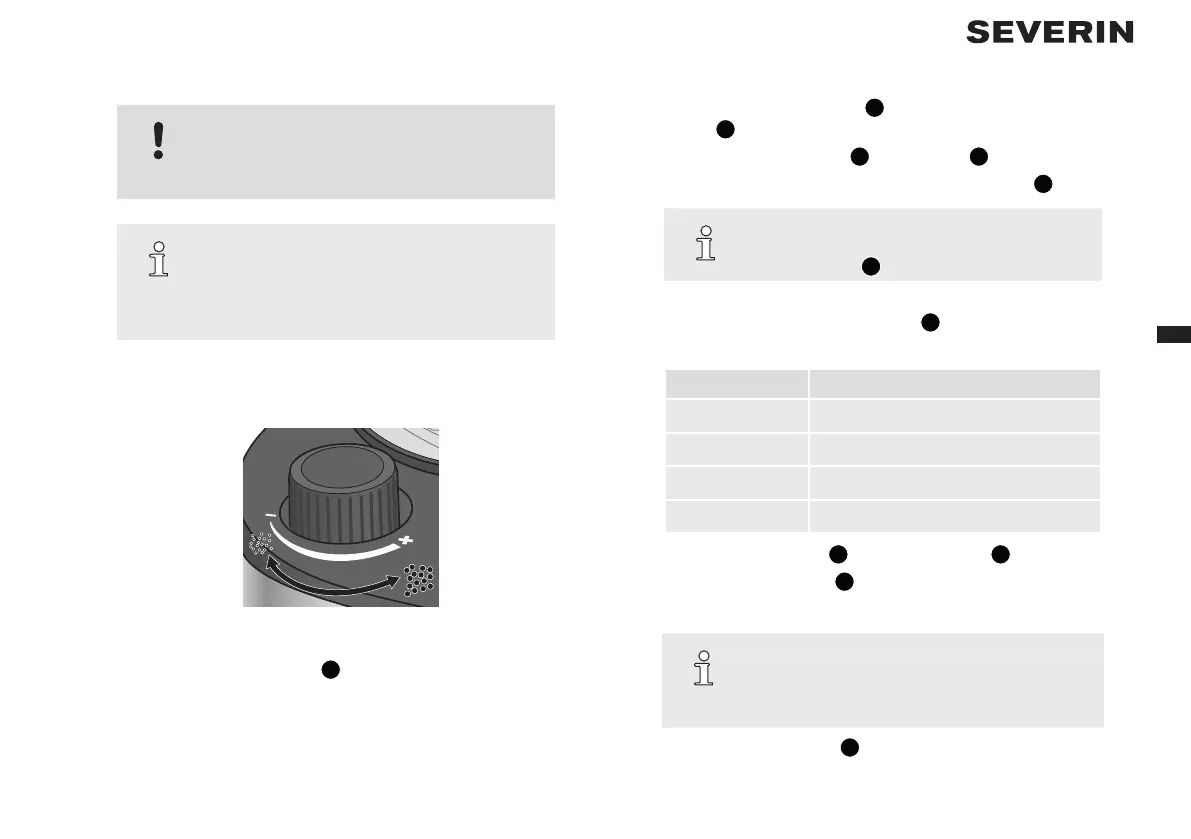 • Wenn Sie den Regler im Uhrzeigersinn in Richtung „-“ drehen, wird