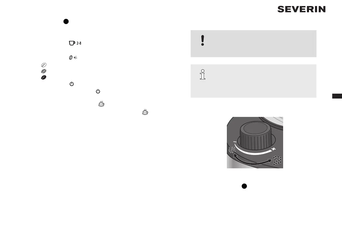 • Om regulatorn vrids moturs ”+” mals kaffet nare.