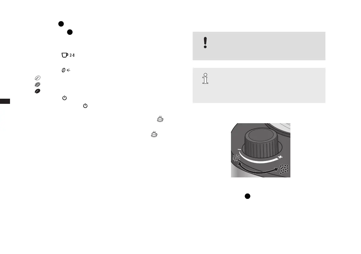 • Als u de regelaar linksom richting “+” draait, wordt de kofe grover