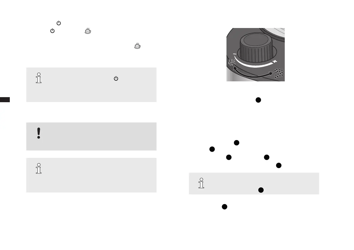 • Hvis du drejer regulatoren mod uret i retning ”+”, males kaffen