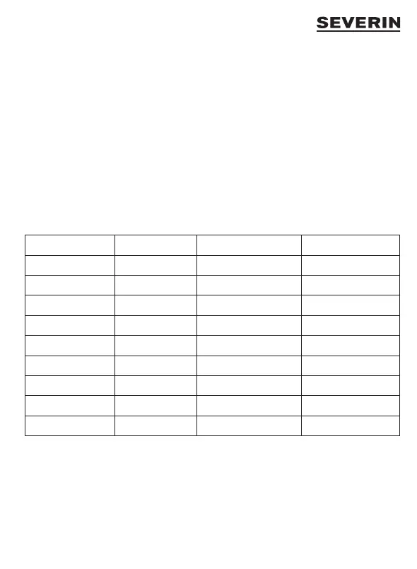 Zubereitungsmengen und Betriebszeiten
