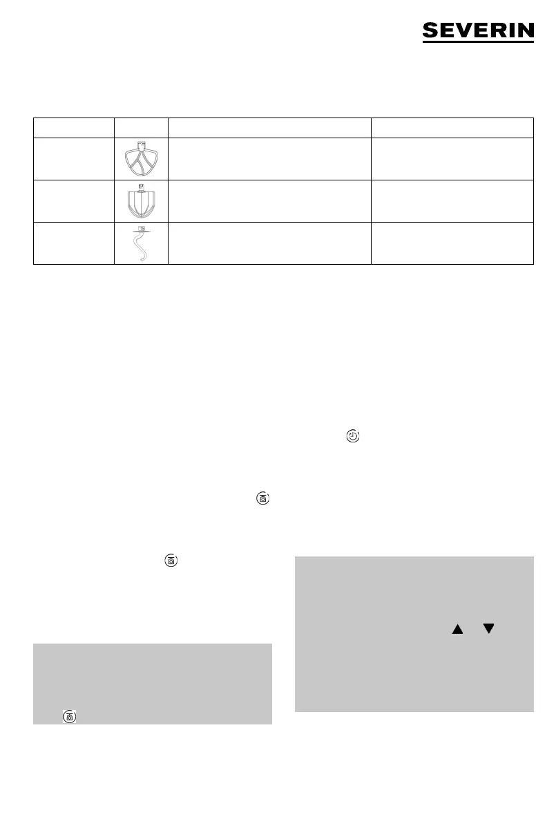 Die Rühreinsätze gemäß folgender Tabelle auswählen. Zum langsamen Vermischen der Zutaten immer erst auf Stufe 1