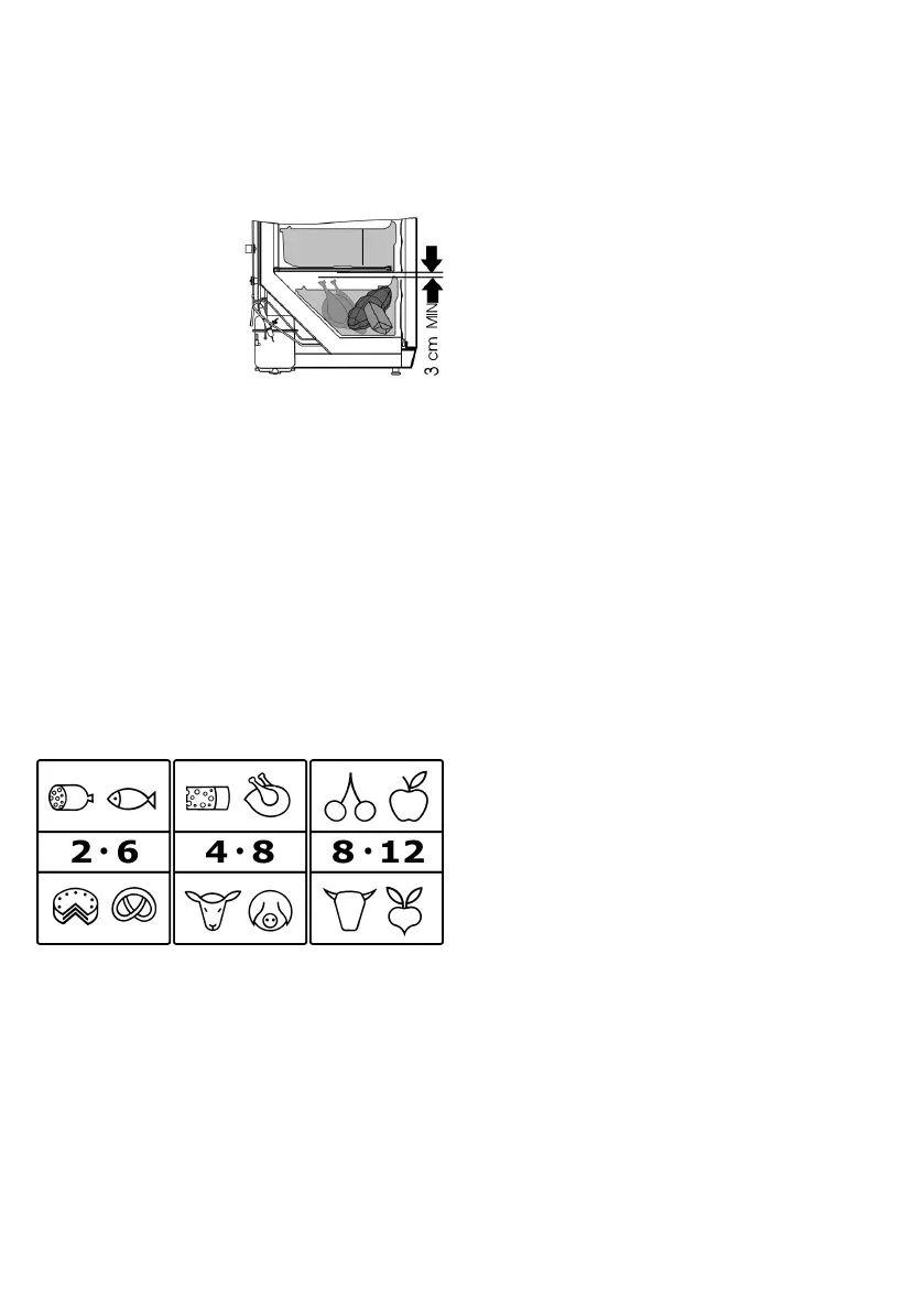 ∙ Lassen Sie warme Lebensmittel abkühlen, bevor Sie sie im