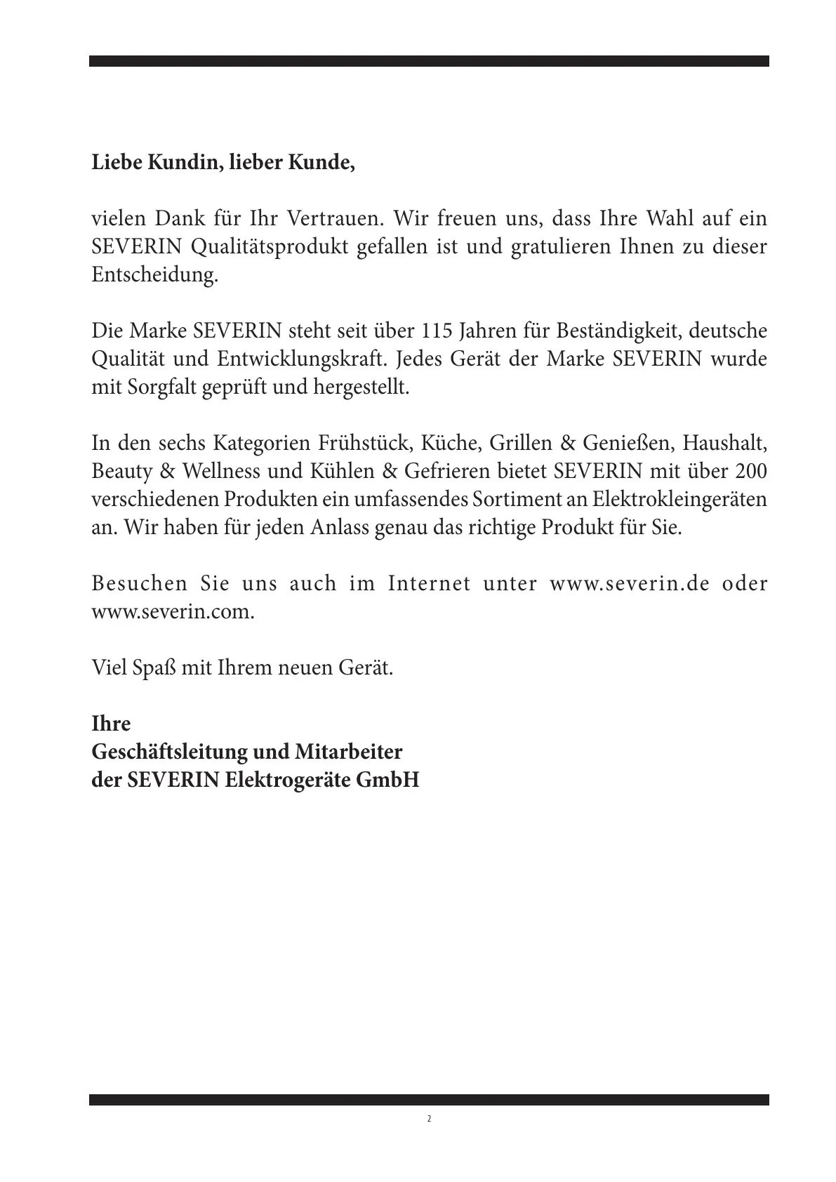 SEVERIN Qualitätsprodukt gefallen ist und gratulieren Ihnen zu dieser