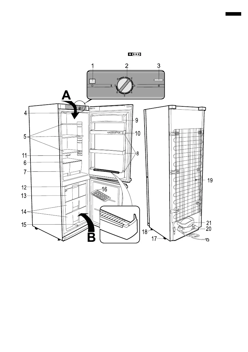 Das Gerät besteht aus zwei Teilen: Gefrierteil (A) und Kühlteil (B).